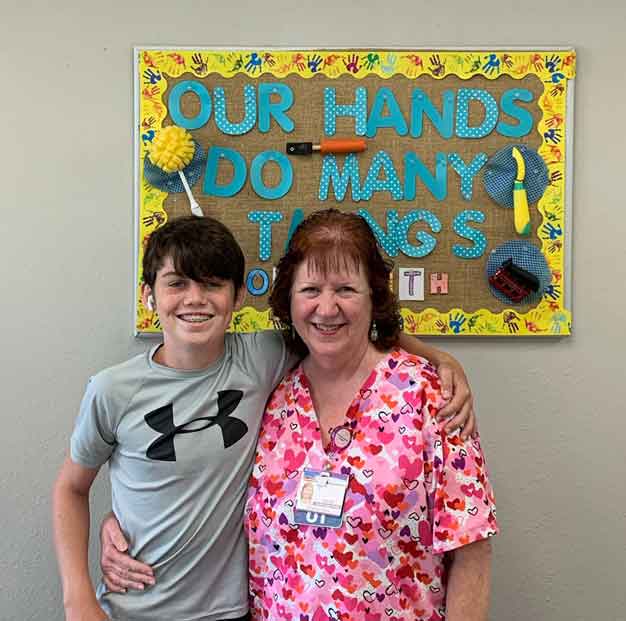 The next step was for Brett to complete several weeks of occupational therapy with Donna Williams, OTR/CHT, occupational therapist at CHRISTUS Southeast Texas.